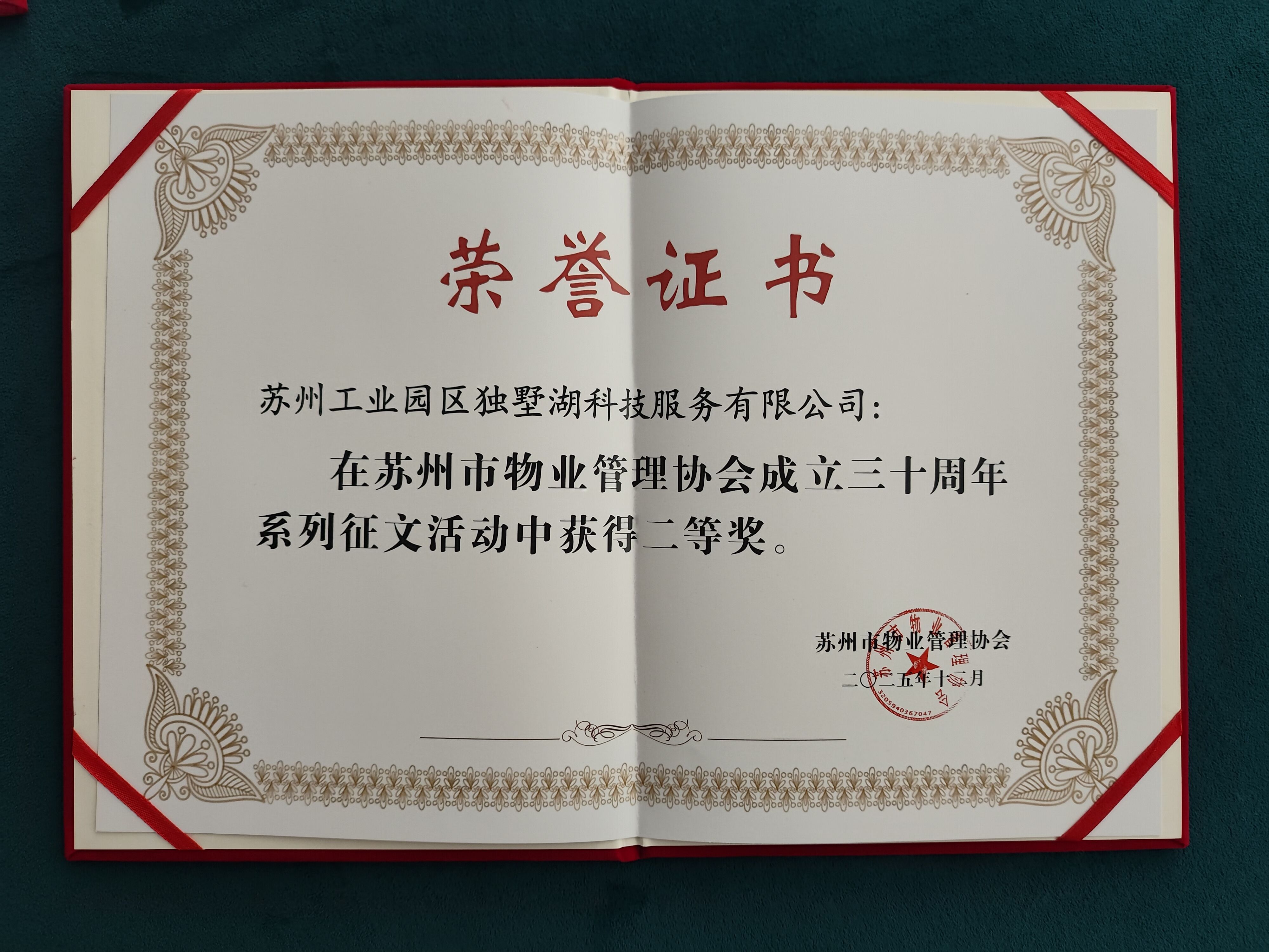 科教·科服公司获颁苏州市物业管理协会2024年度“四星会员单位”